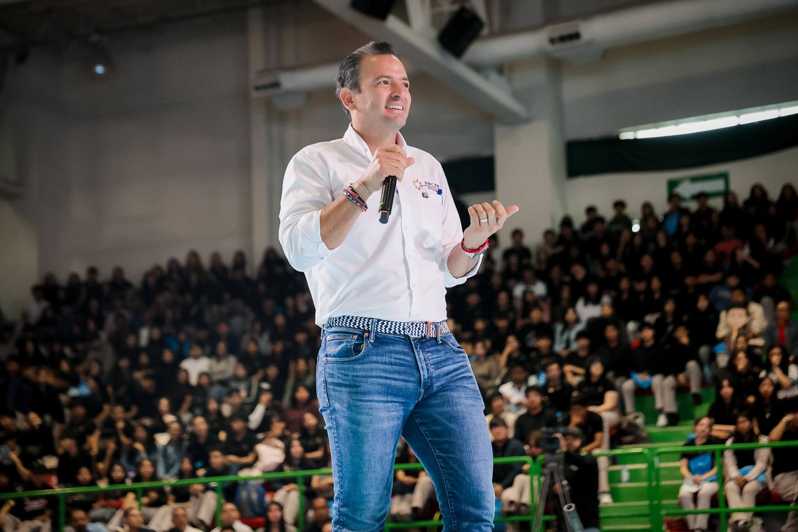 El alcalde de Chihuahua y presidente de la Red Mexicana de Ciudades Amigas de la Niñez (RMCAN), Marco Bonilla, encabezó una asamblea con estudiantes de nivel medio superior en Ciudad Juárez, donde abordó los riesgos actuales que enfrentan niñas, niños y adolescentes, especialmente en entornos digitales.