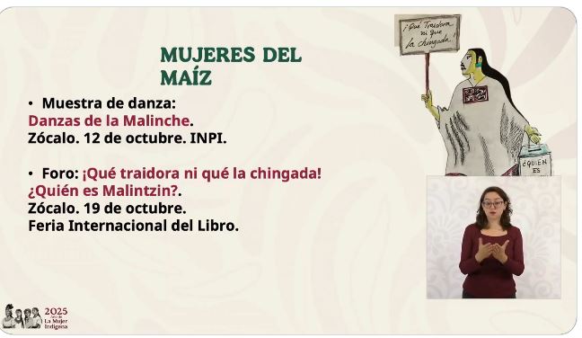 La presidenta Claudia Sheinbaum anunció una serie de actividades en diferentes espacios para impulsar la imagen de la mujer indígena en el país. Además, buscará reivindicar la imagen de Malitzin, señalada por ser traductora de Hernán Cortés previo a la conquista de América.