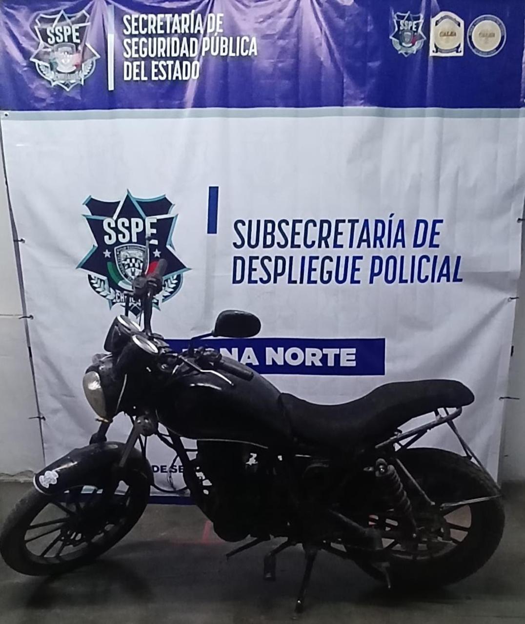 Mediante un operativo de prevención y disuasión del delito, desplegado por elementos de la Secretaría de Seguridad Pública del Estado (SSPE) en el municipio de Nuevo Casas Grandes, se logró aseguramiento de tres motocicletas con reporte de robo y la detención de dos personas, en hechos ocurrido el pasado fin de semana.