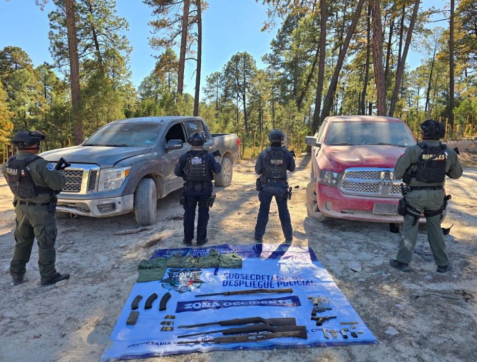 Como parte de las acciones de disuasión del delito implementadas en el municipio de Guachochi, la Secretaría de Seguridad Pública del Estado (SSPE), aseguró un arsenal y dos vehículos tipo pickup presuntamente utilizados por grupos criminales que operan en la región serrana.