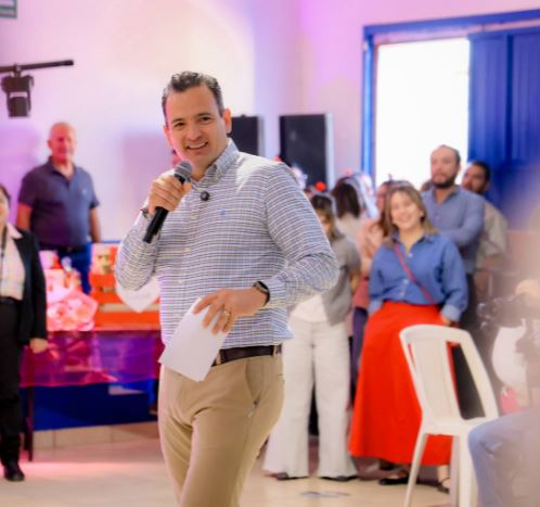 El alcalde de Chihuahua, Marco Bonilla, acompañado de su esposa Karina Olivas, presidenta del DIF Municipal, asistió al “Baile de Corazones” organizado en el Centro Comunitario de Ranchería Juárez, donde convivió con integrantes de los clubes del abuelo de la zona sur de la ciudad, quienes disfrutaron de una tarde llena de música, baile y celebración con motivo del Día de San Valentín.