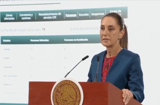 El número de personas que murieron tras las intensas lluvias e inundaciones en 5 estados, subió a 78, informó la presidenta Claudia Sheinbaum.
