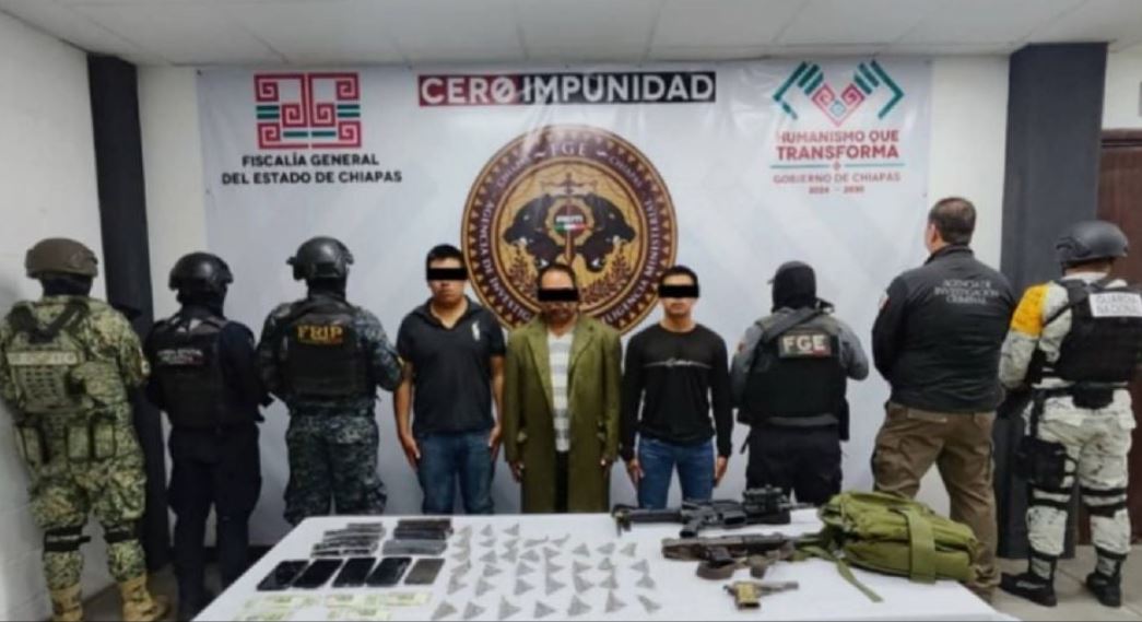 La Secretaría de Seguridad del Pueblo (SSP) del estado de Chiapas informó sobre la captura de tres presuntos integrantes del Cártel Jalisco Nueva Generación (CJNG) con armas de fuego y narcóticos en el municipio de Rincón Chamula San Pedro.