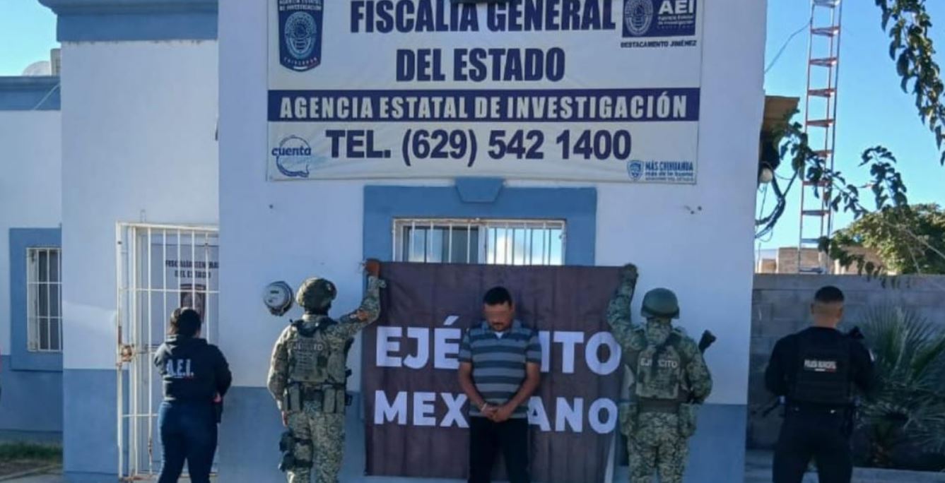 La detención de la citada persona de 40 años de edad, estuvo a cargo de elementos de la Agencia Estatal de Investigación, de la Dirección de Seguridad Pública Municipal y del Ejército Mexicano, que realizaban recorridos para la disuasión de los delitos en la colonia Agustín Melgar de la ciudad de Jiménez.
