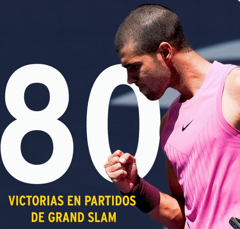 Tras lucir un nivel estelar contra Reilly Opelka y el italiano Mattia Bellucci, Alcaraz prolongó su momento dulce y alcanzó las 80 victorias en su carrera en un Grand Slam.