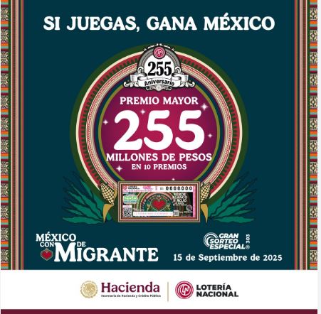 La titular de la Lotería Nacional, Olivia Salomón, informó que el «Gran Sorteo Especial, México con M de Migrante», se realizó el pasado 15 de septiembre y tuvo una bolsa de más de 424 millones de pesos (mdp) y un premio mayor de 255 mdp, dividido en 10 premios de 25.5 mdp cada uno.