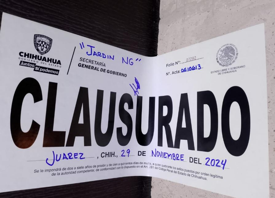 * Salón de eventos “Jardín NG”, por no contar con permiso (Juárez)