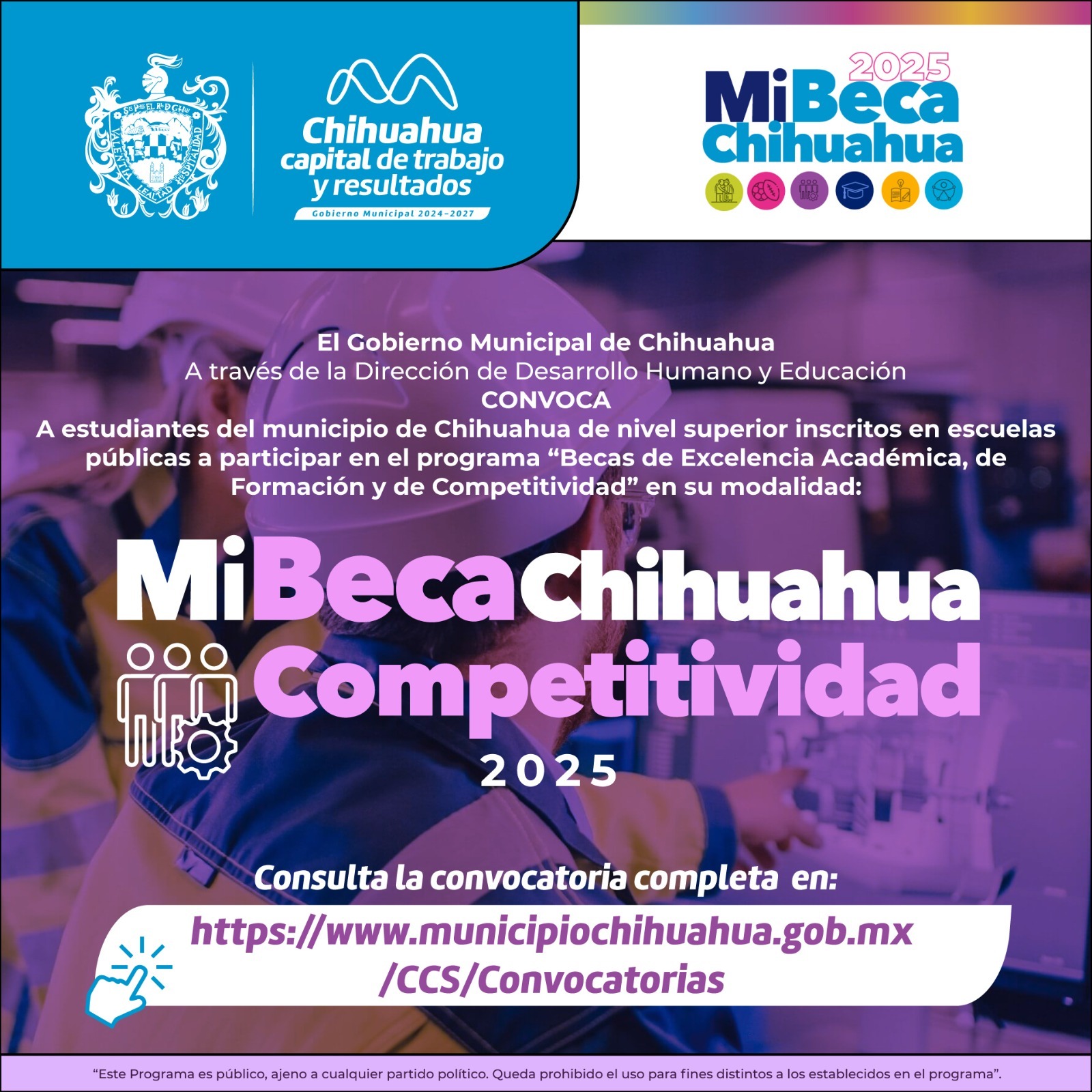 Para conocer las bases y requisitos de las convocatorias de Mi Beca Chihuahua visitar la página web https://www.municipiochihuahua.gob.mx/CCS/Convocatorias.