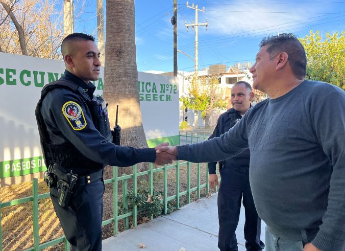 Durante los patrullajes, los elementos de la Policía Municipal se entrevistan con vigilantes y personal de resguardo de las escuelas, con quienes mantienen comunicación directa y se ponen a disposición para atender cualquier situación que pudiera presentarse, fortaleciendo así la coordinación y la respuesta oportuna ante incidentes.