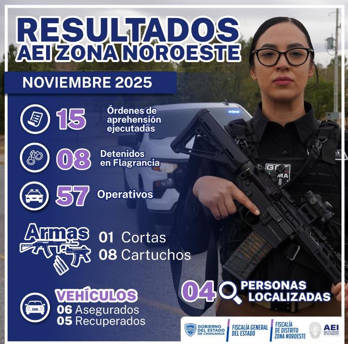 Dentro de las acciones para combatir los delitos, la Agencia Estatal de Investigación en la Zona Noroeste del estado, dio a conocer los resultados alcanzados durante el mes de noviembre.