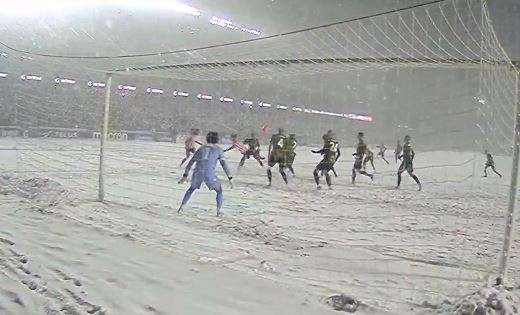 El campo del estadio TD Place quedó cubierto por una intensa nevada, y se utilizaron quitanieves para despejar la cancha antes del tiempo extra.