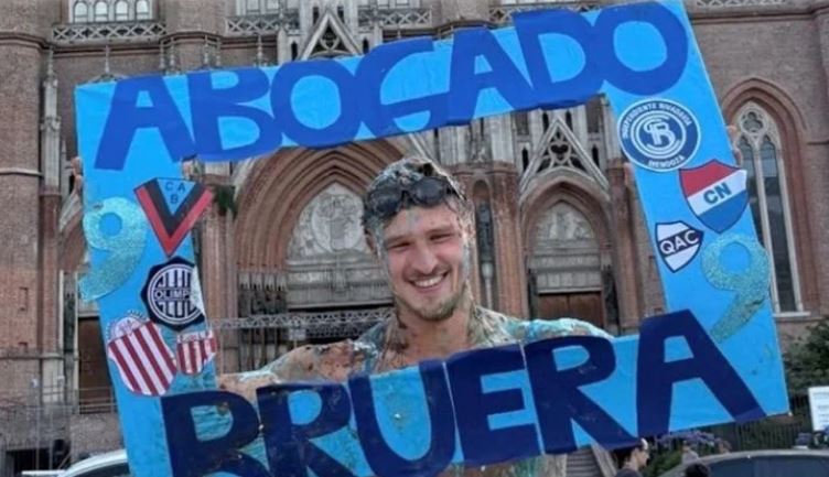 Bruera fue recibido con huevos y harina por amigos y familiares luego de superar con éxito su examen profesional, lo que es conocido como el ‘bautismo académico’.