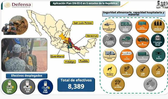 El general Ricardo Trevilla, secretario de la Defensa Nacional, informó los avances del Plan DN-III-E en los estados afectados.