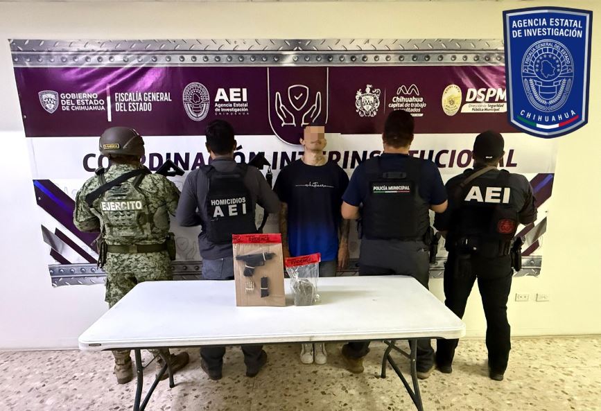 En Operativo Conjunto para la disuasión de delitos y detención de personas en conflicto con la ley, personal de la Agencia Estatal de Investigación (AEI), de la Secretaría de la Defensa Nacional (DEFENSA) y de la Dirección de Seguridad Pública Municipal (DSPM), detuvieron en flagrancia a un sujeto en posesión de droga y un arma de fuego.