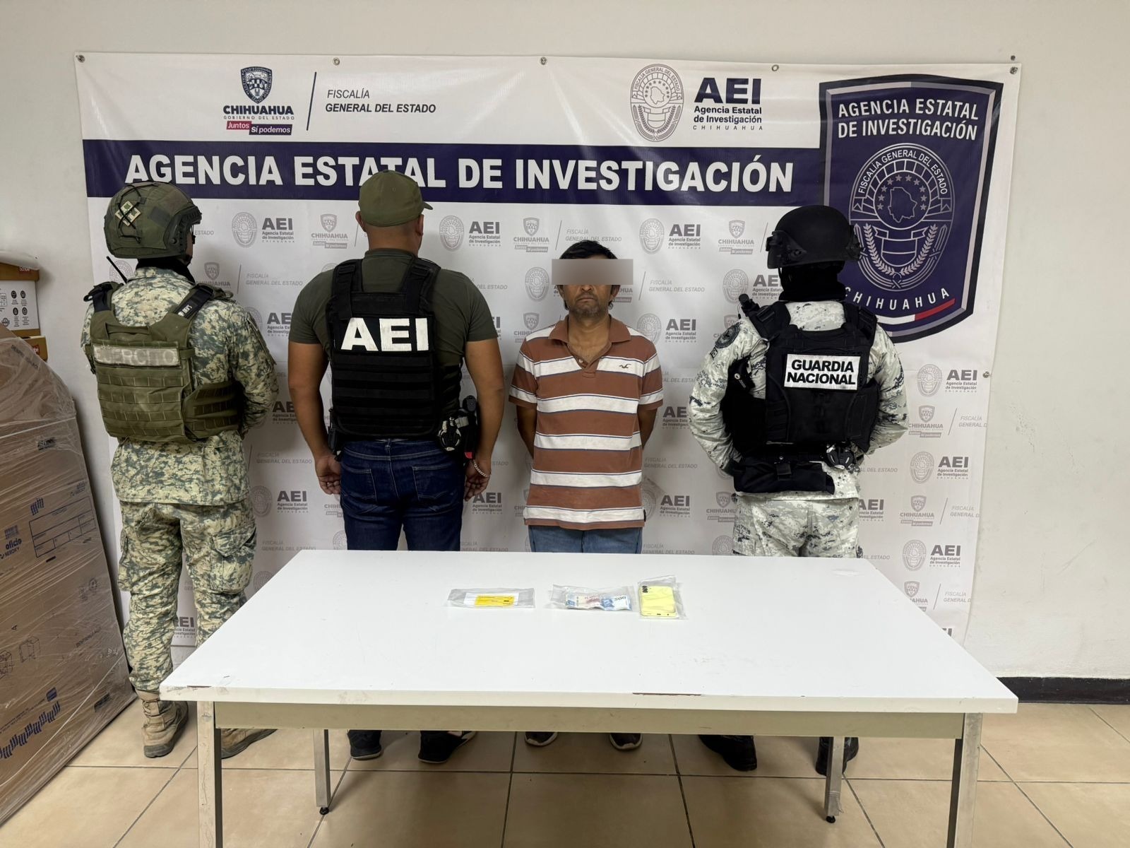 Elementos de la Agencia Estatal de Investigación de la Fiscalía de Distrito Zona Norte, detuvieron en flagrancia a quien se identificó como Mario Roberto M. G. por el delito de extorsión, cometido en Ciudad Juárez.