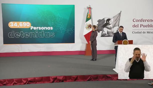 El secretario de Seguridad Pública, Omar García Harfuch, informó que entre septiembre de 2024 y septiembre de 2025 se logró la detención de 34 mil 690 personas vinculadas con delitos como extorsión, tráfico de drogas y armas, homicidio, entre otros.