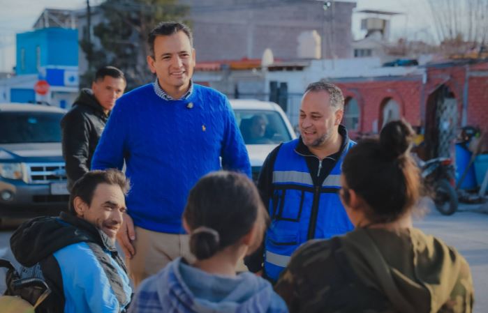 El alcalde Marco Bonilla recorrió la tarde de este martes la colonia Tarahumara para hacer entrega de cobijas y despensas para las familias de la etnia ralámuli más vulnerables que habitan en la zona.