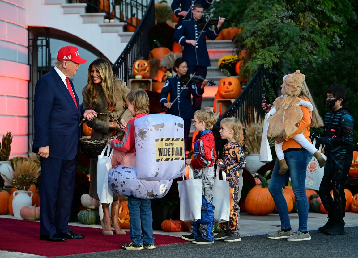 El presidente de Estados Unidos, Donald Trump, junto a la primera dama, Melania Trump, entregaron este jueves decenas de dulces a niños disfrazados en la Casa Blanca, como parte de las tradiciones previas a la noche de Halloween.