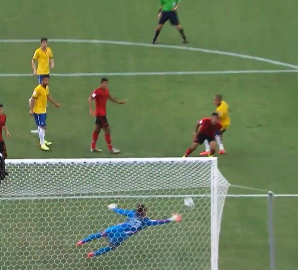 El máximo organismo del futbol publicó un video de aquel momento que hizo vibrar a cientos de mexicanos en el segundo partido del Tricolor. Dani Alves mandó un servicio a segundo poste, Neymar Jr le ganó el espacio a Rafa Márquez para rematar de cabeza, el balón estuvo a punto de entrar cerca del poste derecho, pero ‘Memo’ Ochoa se empleó a fondo para desviar el esférico con la mano derecha al minuto 26.