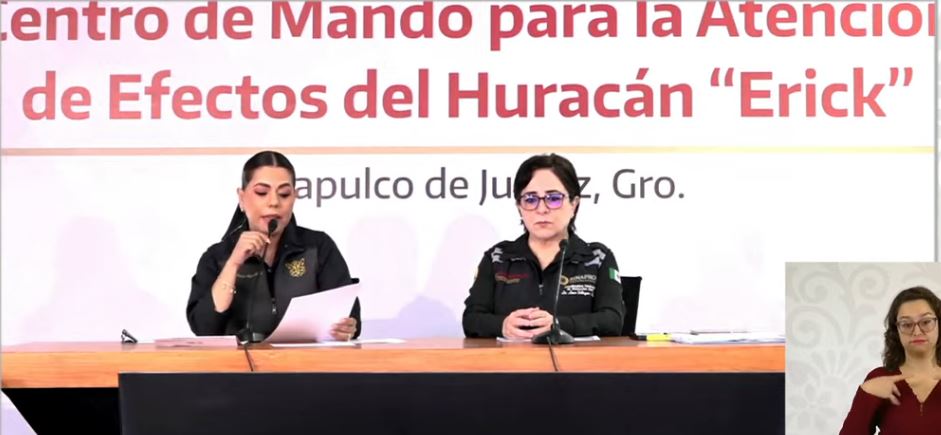 La coordinadora nacional de Protección Civil, Laura Velázquez, informó que el huracán Erick ingresará en México como categoría 2 en las próximas horas. La zona del impacto todavía no está clara por la actualización de su trayectoria, pero entraría por Acapulco, en Guerrero, o San Pedro Mixtepec, en Oaxaca, alertó Protección Civil.