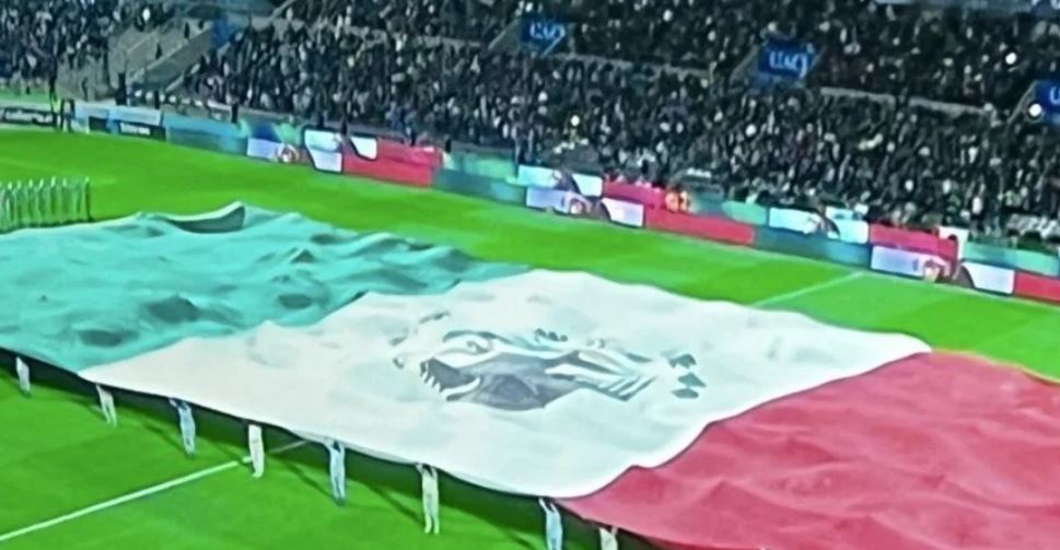 En redes sociales se volvió viral el momento de la transmisión de TV Azteca que mostró esa ceremonia, en la que varias personas sobre la cancha despliegan una bandera gigante de México cuando se escucha el Himno Nacional entonado por integrantes de la Guardia Nacional.