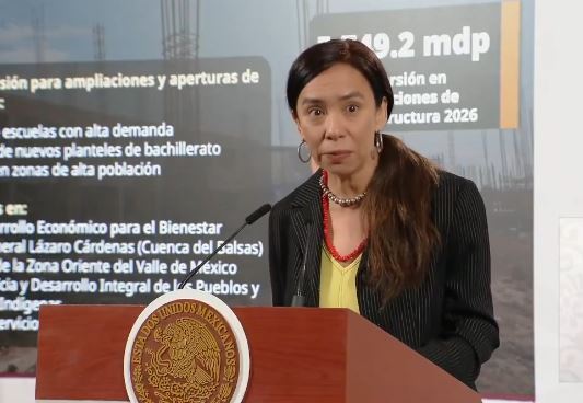 Tania Rodríguez Mora, subsecretaria de Educación Media Superior, explicó el plan en infraestructura educativa para el año 2026, cuya inversión será de 5,749.2 mdp.