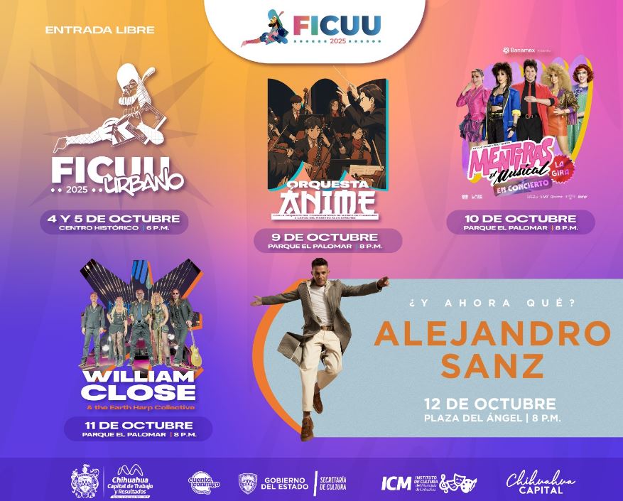 El Gobierno Municipal de Chihuahua, a través del Instituto de Cultura, invita a una semana llena de música, arte y talento internacional con los conciertos del Festival Internacional de la Ciudad de Chihuahua (FICUU) edición 2025, del 9 al 12 de octubre en El Palomar y Plaza del Ángel.