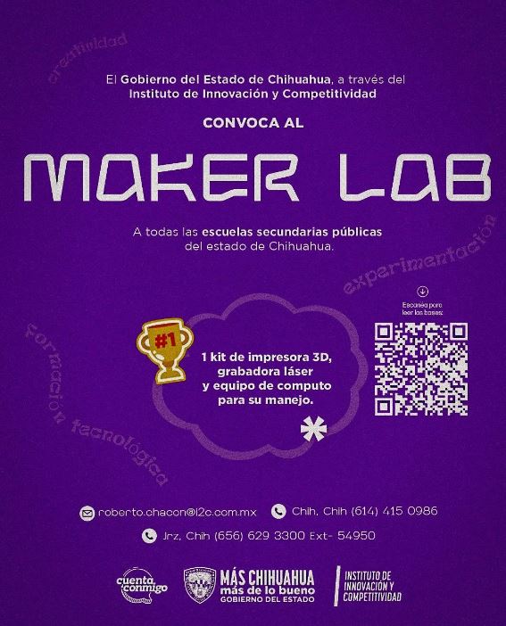 El Gobierno del Estado de Chihuahua, a través del Instituto de Innovación y Competitividad, lanzó la convocatoria “Maker Lab 2025”, dirigida a secundarias públicas interesadas en implementar un espacio tecnológico con fines educativos.