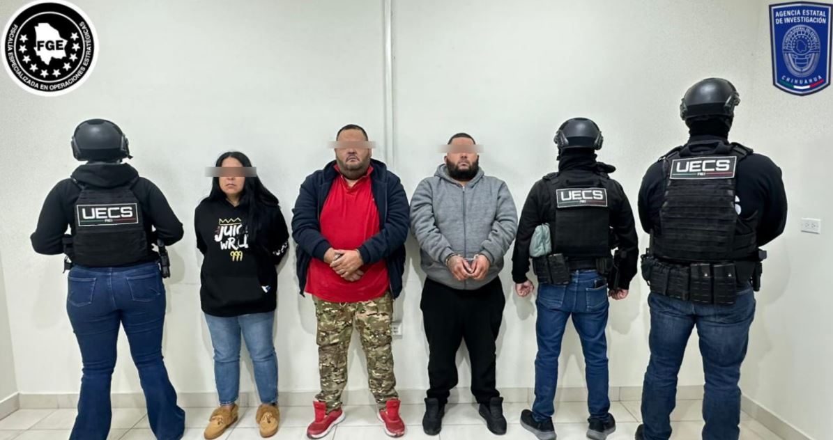 Por estos hechos registrados en la ciudad de Chihuahua, fueron detenidos Óscar Amador A. H., Bryan Jairel T. N. y Jazmín Iveth J. P., a quienes les cumplimentaron órdenes de aprehensión obsequiadas por un Juez de Control que revisó los antecedentes derivados de las acciones de inteligencia e investigación para el esclarecimiento de los hechos.