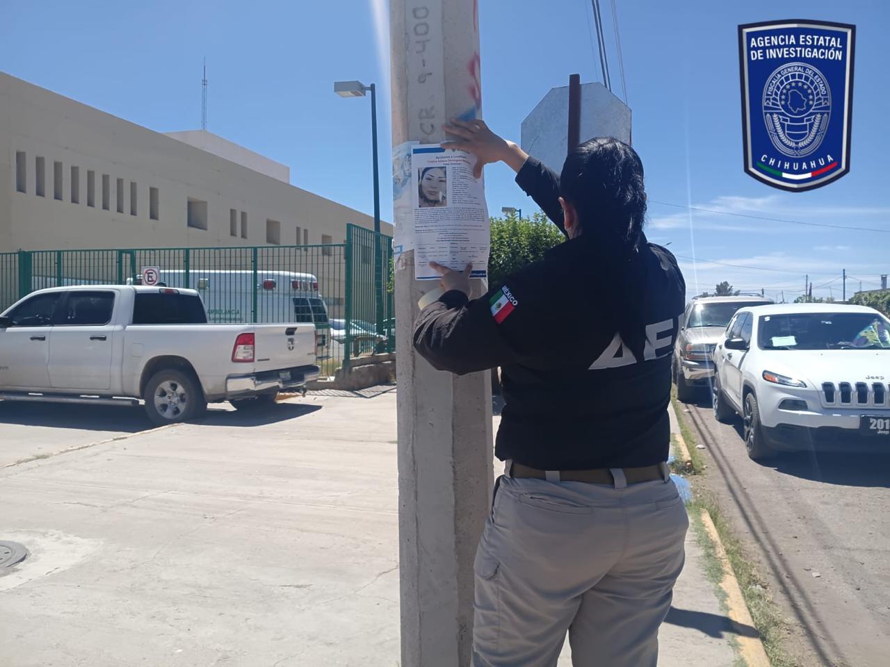 En seguimiento a los mecanismos de búsqueda y localización de personas reportadas ausentes y/o desaparecidas, efectivos de la Fiscalía de Distrito Zona Noroeste, llevaron a cabo el reparto y pega de pesquisas en parques, calles y lugares públicos, en la ciudad de Nuevo Casas Grandes.