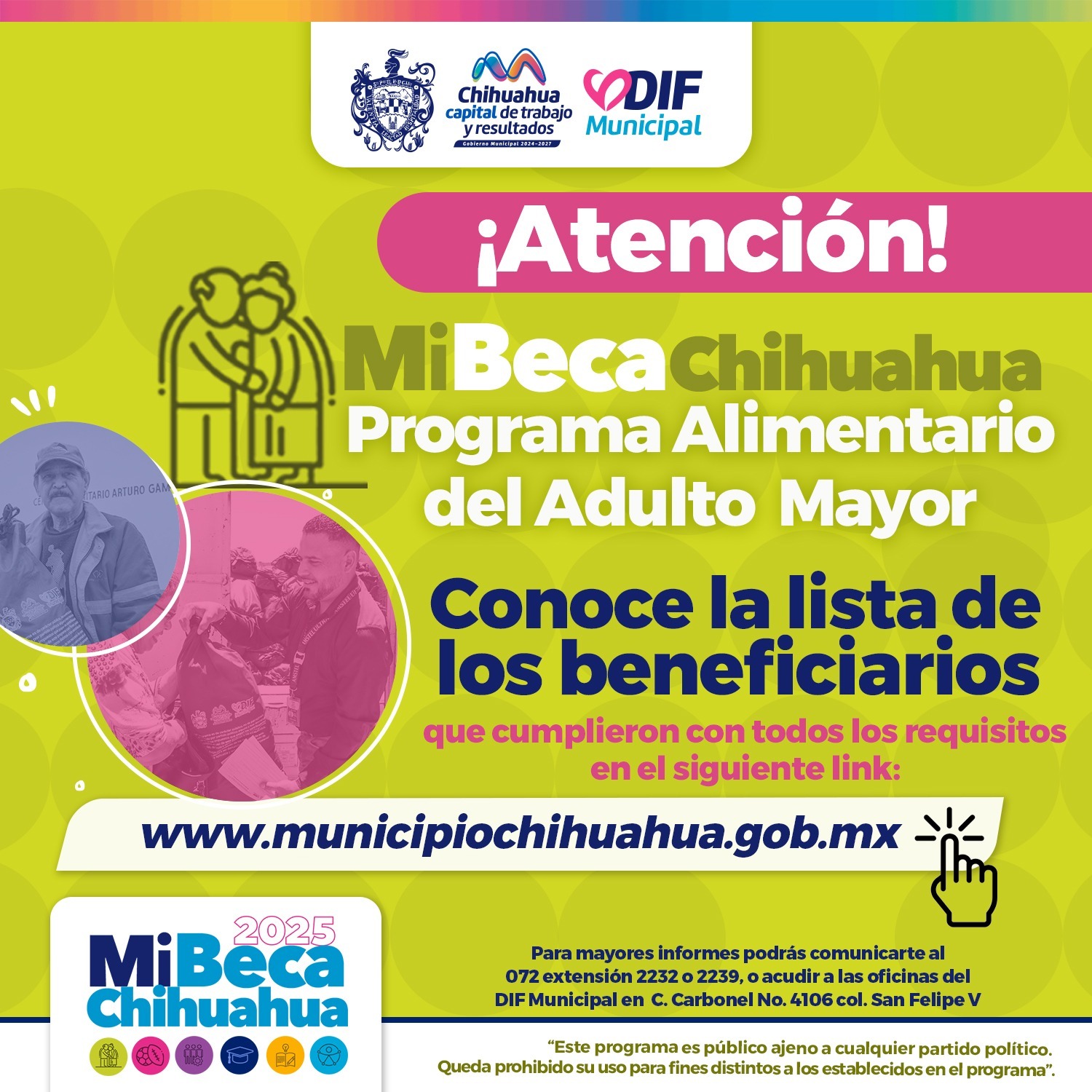 Chihuahua, Chih., a 16 de marzo del 2025.- El DIF Municipal, da a conocer la lista de beneficiarios del Programa Alimentario del Adulto Mayor (PAAM) con un total de 7 mil 265 adultos mayores que se apoyarán este año 2025.