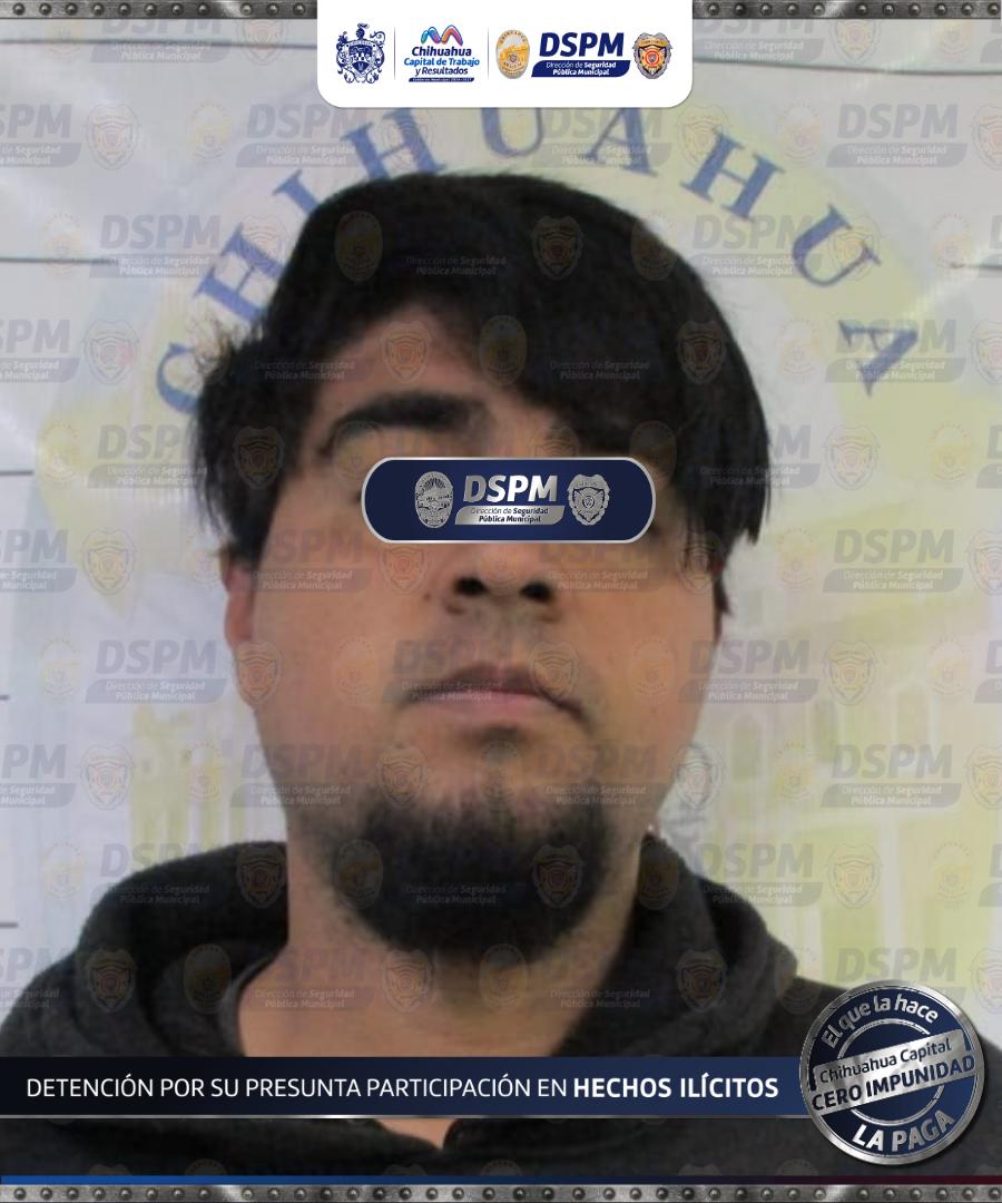 Al detenido de nombre Kevin Martín T. Ch., de 28 años de edad, se le relaciona en el robo contra la empresa Carvel de avenida Pacheco en la colonia Cerro Coronel, así como un OXXOGAS de la calle 27 en la colonia Obrera, ocurridos respectivamente los días 2 de noviembre de 2025 y 18 de enero del presente año.