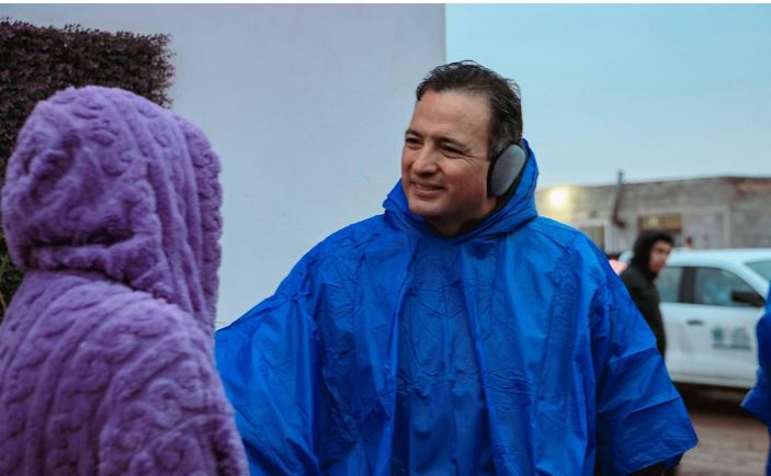 El alcalde Marco Bonilla recorrió calles de la colonia Los Mezquites al sur de la ciudad para llevar diversos apoyos durante la lluvia ocurrida por la tarde de este lunes, además de las bajas temperaturas que prevalecen en la ciudad.