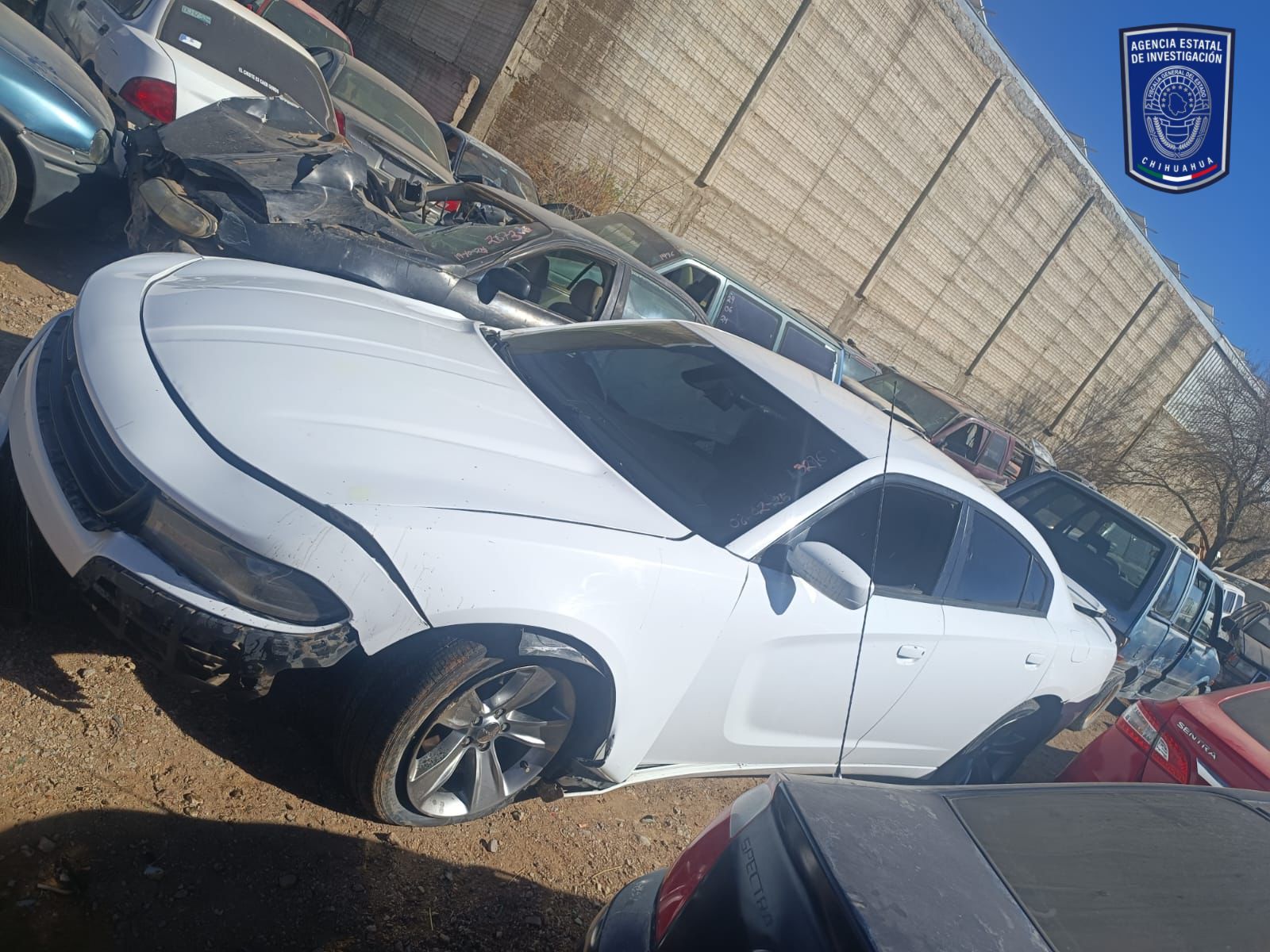 Mientras que en un corralón de grúas ubicado en la colonia Tierra y Libertad, localizaron un vehículo de la marca Dodge, línea Charger, modelo 2015, color blanco, sin placas de circulación, robado el pasado sábado 08 de febrero.