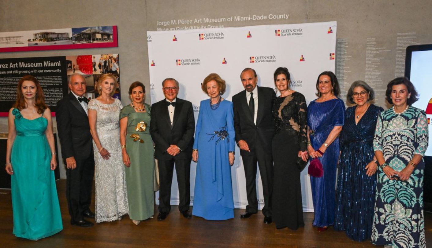 El evento tuvo lugar en el Pérez Art Museum Miami (PAMM), donde la reina emérita galardonó al inmobiliario y filántropo cubano Jorge M. Pérez, junto a su esposa Darlene Pérez, quien ha dedicado más de 30 años a la defensa de la atención médica, la educación y las artes, además de fundar el Comité Internacional de Mujeres del museo.