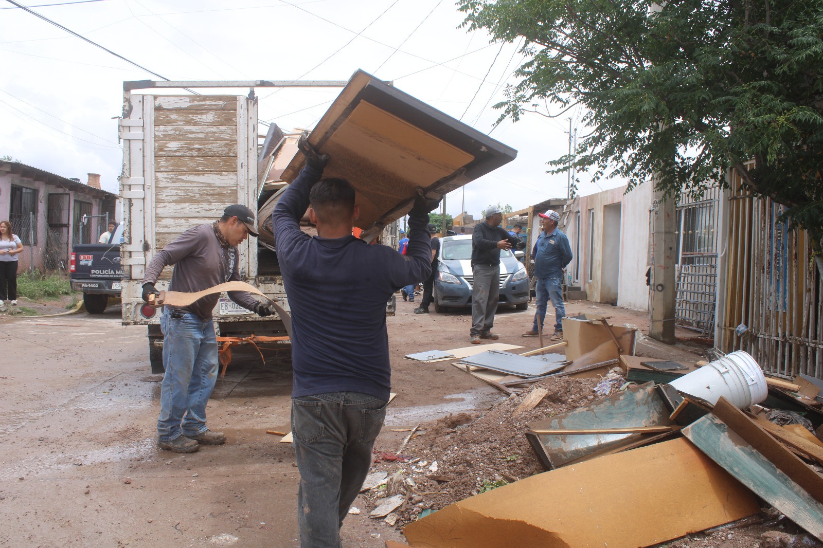 Desde la Dirección de Servicios Públicos Municipales se trabajó tanto en el retiro de pertenencias dañadas en distintas colonias de la ciudad, así como en la remoción de arrastres, en esto último, se han retirado 920 toneladas de tierra de las calles al sur de la capital.