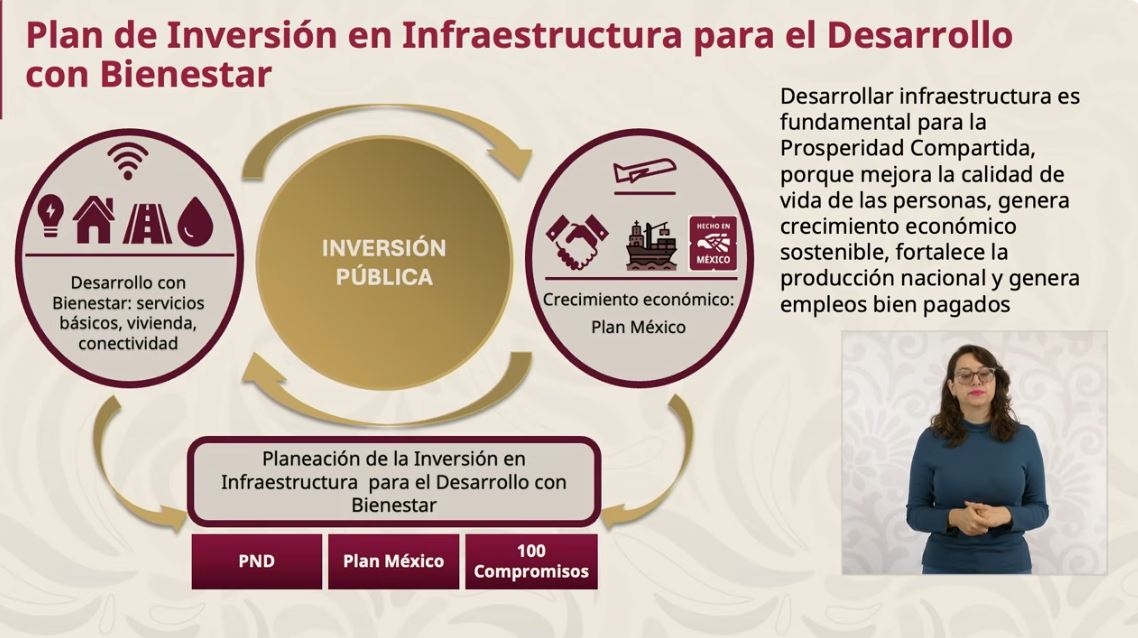 En donde destacó que el centro de la estrategia es la inversión pública con base en los 100 compromisos de la presidenta, el Plan México y el Plan Nacional de Desarrollo.