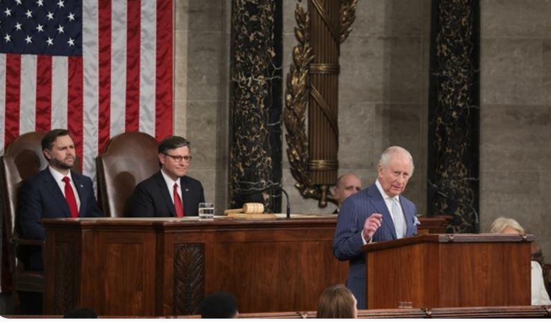 En el primer discurso de un monarca británico ante el Congreso desde el de Isabel II en 1991, Carlos III subrayó que «la OTAN está comprometida con la defensa mutua, protegiendo a los ciudadanos y manteniendo seguros a Norteamérica y Europa frente a adversarios comunes».