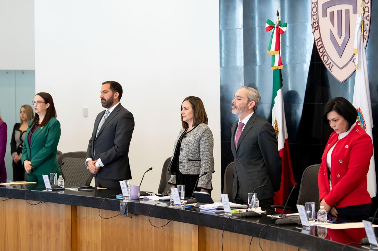 Este acto de respeto tuvo lugar al inicio de la sesión plenaria, reconociendo la trayectoria y el sensible fallecimiento del juzgador en Poder Judicial del Estado.