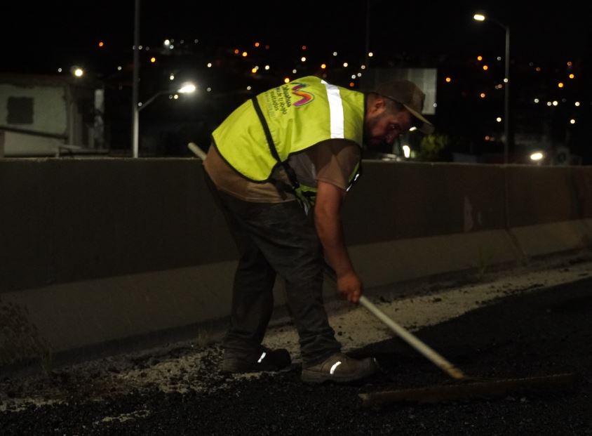 Actualmente se realizan trabajos de reposición de la carpeta asfáltica en 6 mil 679 metros cuadrados con un espesor de 3.5 centímetros en la lateral del periférico de la Juventud, en el tramo que va de la calle Río Papigochi a la calle Escuela Cuauhtémoc, en ambos sentidos.