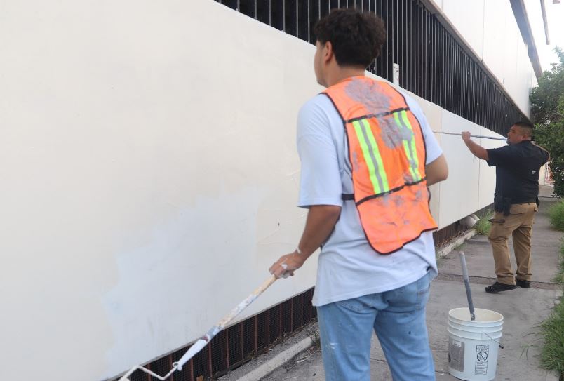 En días recientes jóvenes infractores participaron en la reparación de pintura en bardas de la colonia Centro y en Punta Oriente, en donde los agentes municipales, resguardaron su integridad y colaboraron con las acciones de reparación.