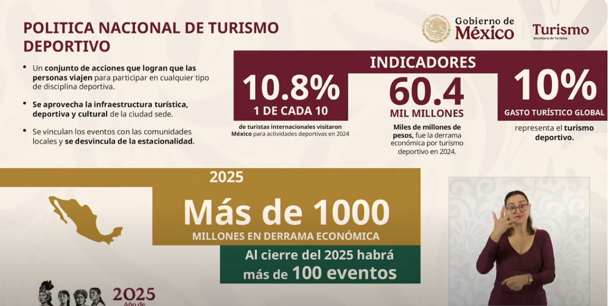 Indicó que la derrama económica es de 60 mil millones de pesos y representa el 10 por ciento del gasto turístico global.