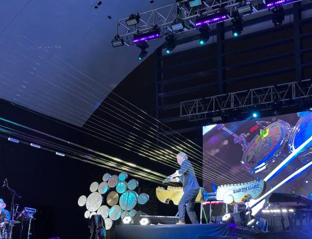 La imponente arpa gigante, creada e interpretada por el artista estadounidense William Close, transformó el escenario del Palomar en un instrumento monumental que envolvió al público con su sonido majestuoso.